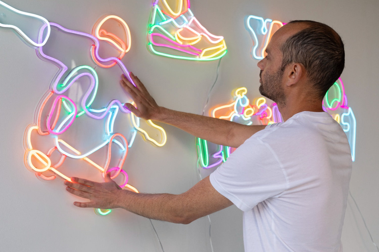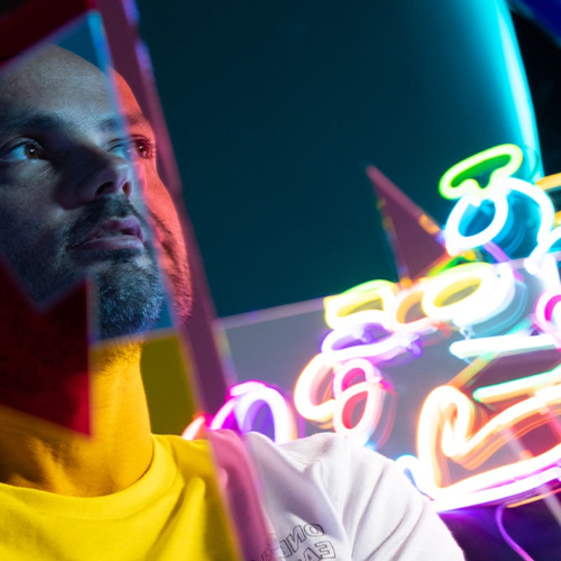L’artiste nous invite à rejoindre son univers dans lequel il ne cesse de jouer et de s'amuser ! Pour cette collection de néons LED haute en couleurs, il a représenté quelques-unes de ses créations emblématiques : des mots… Mais pas que !