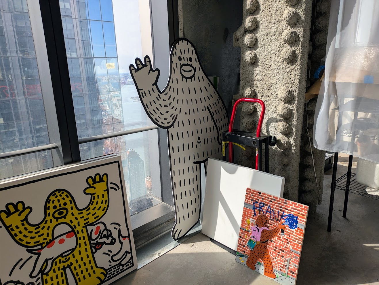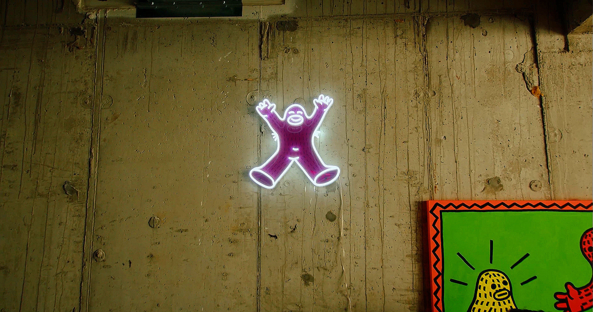 Frank Ape est un personnage énigmatique imaginé par l’artiste new-yorkais Brandon Sines. Emblème de joie et de fantaisie, Frank évolue dans les rues de New York aux côtés des humains, tout en échappant à leurs limites. Porteur de valeurs comme la bienveillance, la créativité et l’égalité, il touche aussi bien les humains que les animaux, éveillant en chacun une force intérieure insoupçonnée. Son univers célèbre l’optimisme, la persévérance et l’affirmation de soi face aux épreuves. La communauté et l’expression personnelle sont au cœur de la démarche artistique de Sines, qui a permis à Frank de rayonner à l’échelle internationale. Parmi les projets phares : une fresque de 30 mètres au World Trade Center, plus de 20 collaborations avec Gap, des apparitions numériques dans tout New York via les bornes Link, ainsi qu’un partenariat officiel avec le musée Guggenheim à l’occasion de son 60e anniversaire. Le message de Frank Ape continue de trouver un écho auprès des collectionneurs et du public dans le monde entier.