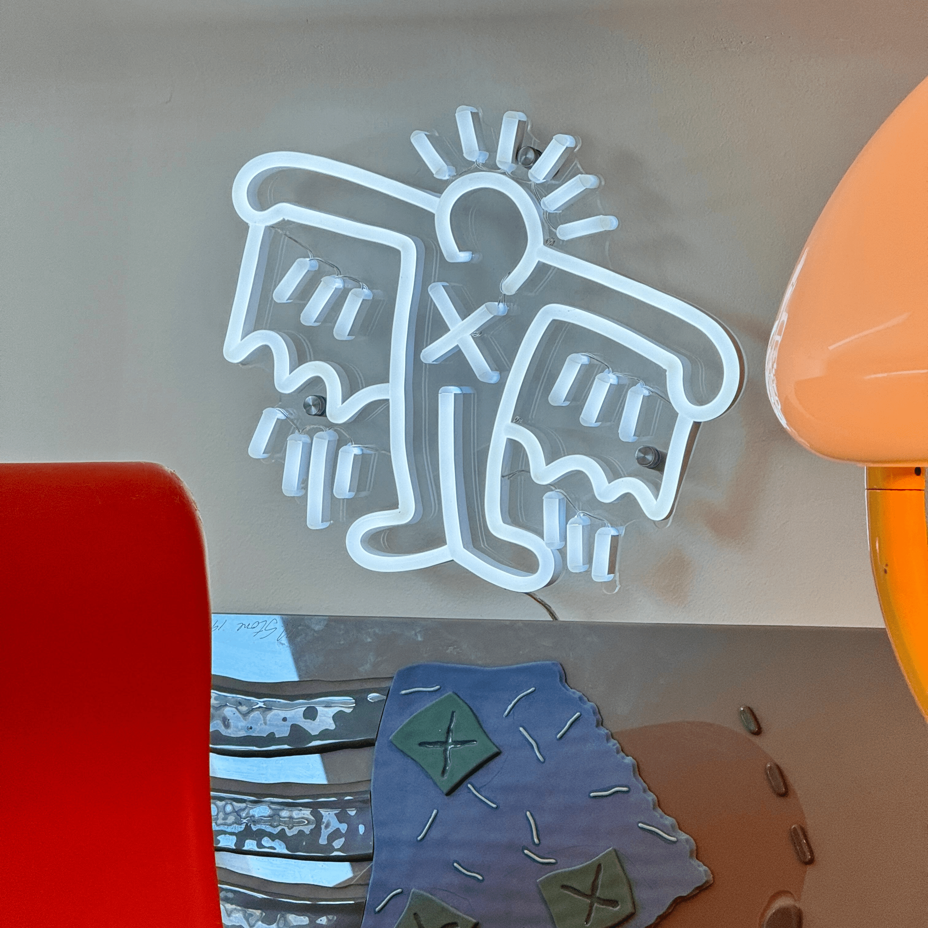 Ce néon donne vie à l'un des personnages excentriques de Scharf. Avec sa teinte bleu foncé et son design expressif, cette pièce capture le sens de l'humour ludique de l'artiste et son amour pour les images audacieuses.