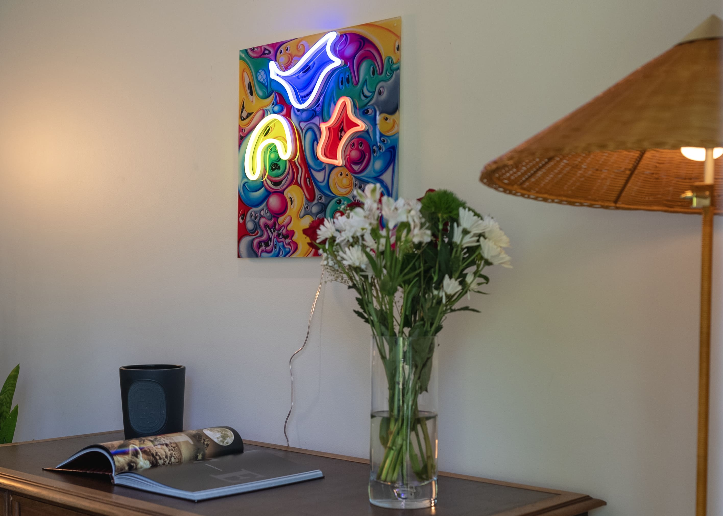 Les néons exclusifs mettent en avant les couleurs vibrantes, les personnages surréalistes et l'esthétique ludique de Kenny Scharf. Un incontournable pour les collectionneurs d'art et les amateurs de culture pop.