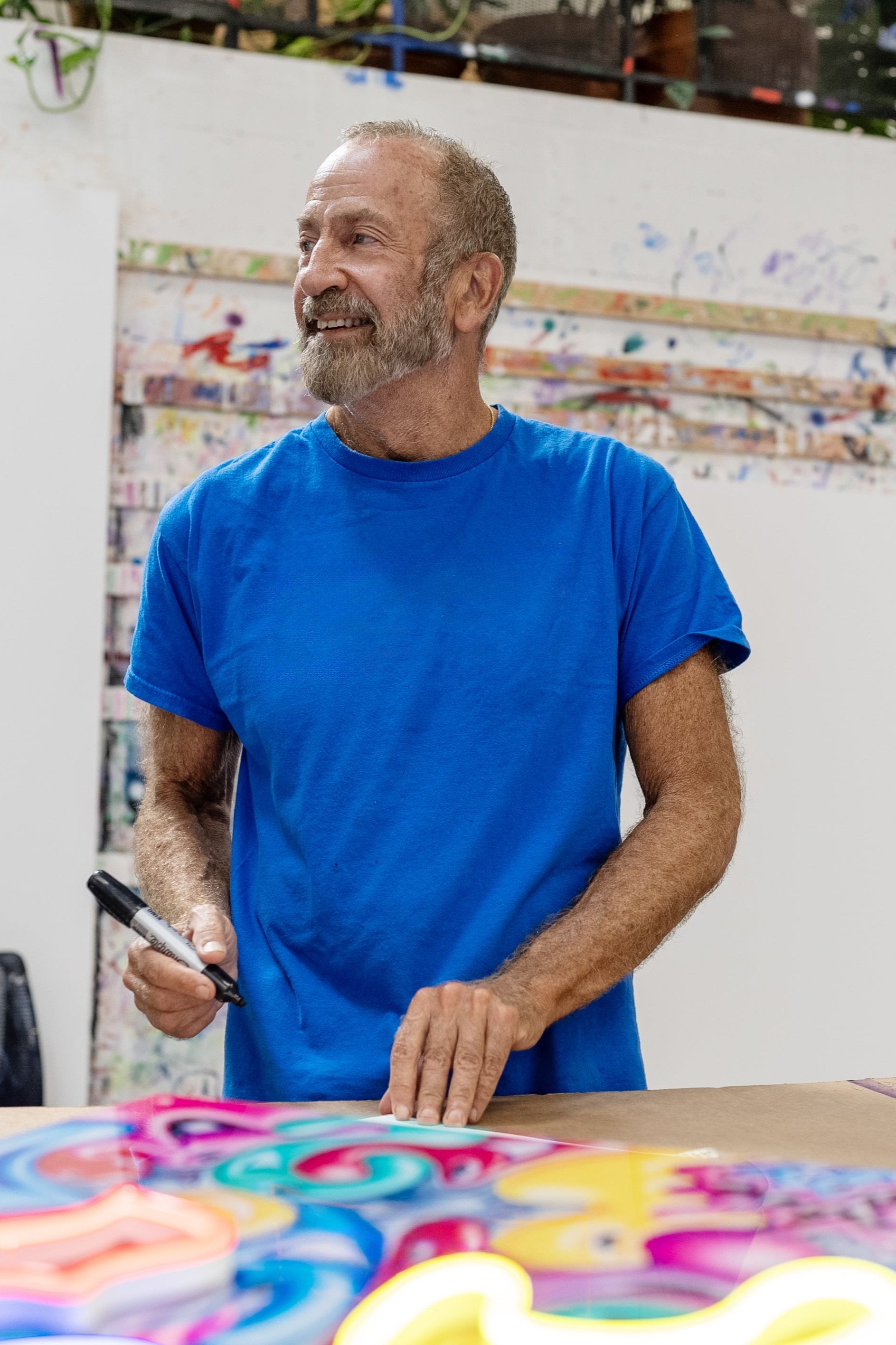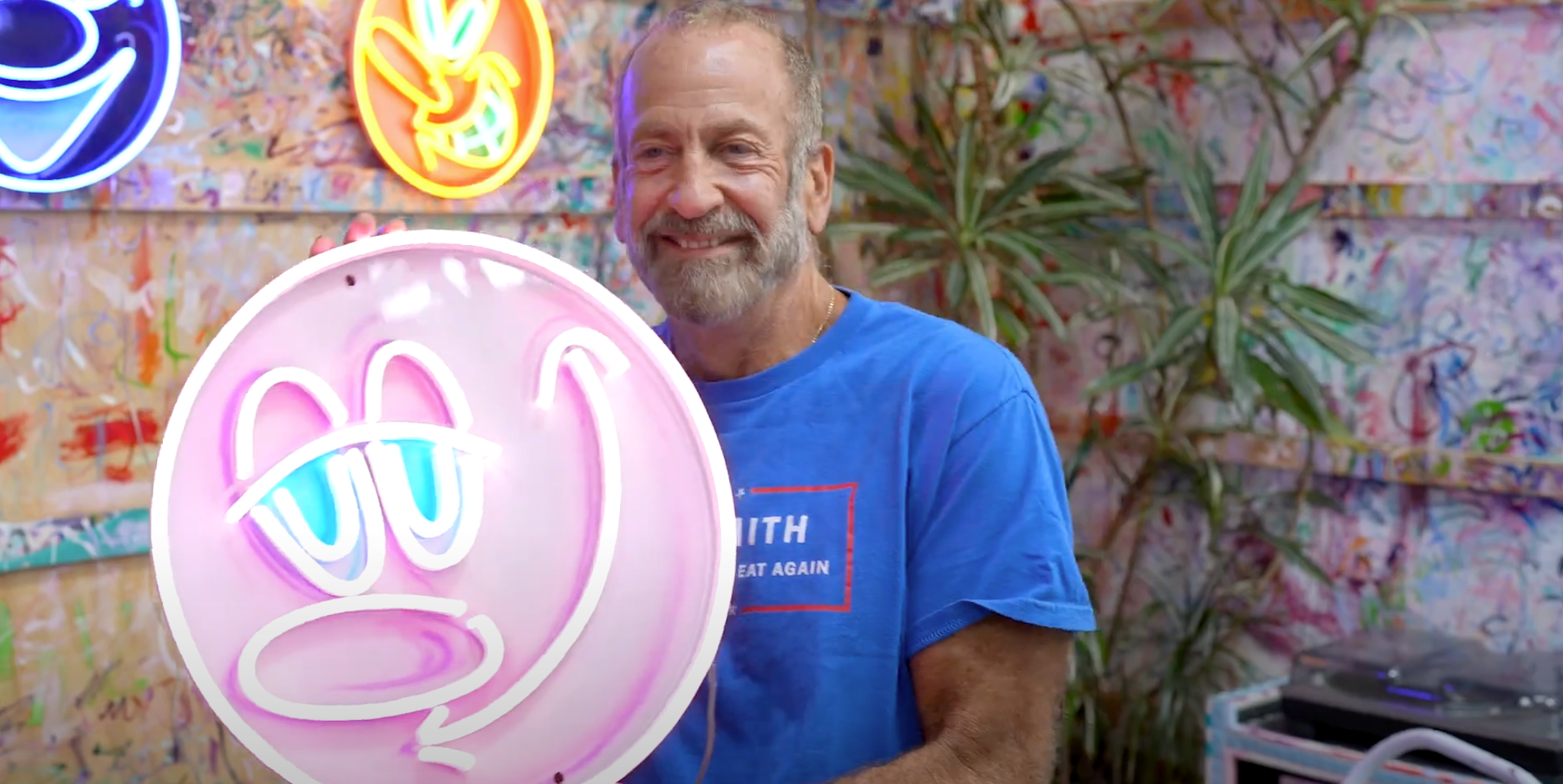 Kenny Scharf est une figure clé des mouvements américains du pop art et du street art, connu pour mêler des couleurs vibrantes, des personnages surréalistes et des éléments cosmiques dans son travail. Devenu célèbre dans les années 1980 aux côtés de ses contemporains Keith Haring et Jean-Michel Basquiat, l'univers de Scharf est défini par son approche ludique et psychédélique de l'art, où se rencontrent la culture pop, l'espace extra-terrestre et des figures semblables à des personnages de dessins animés.