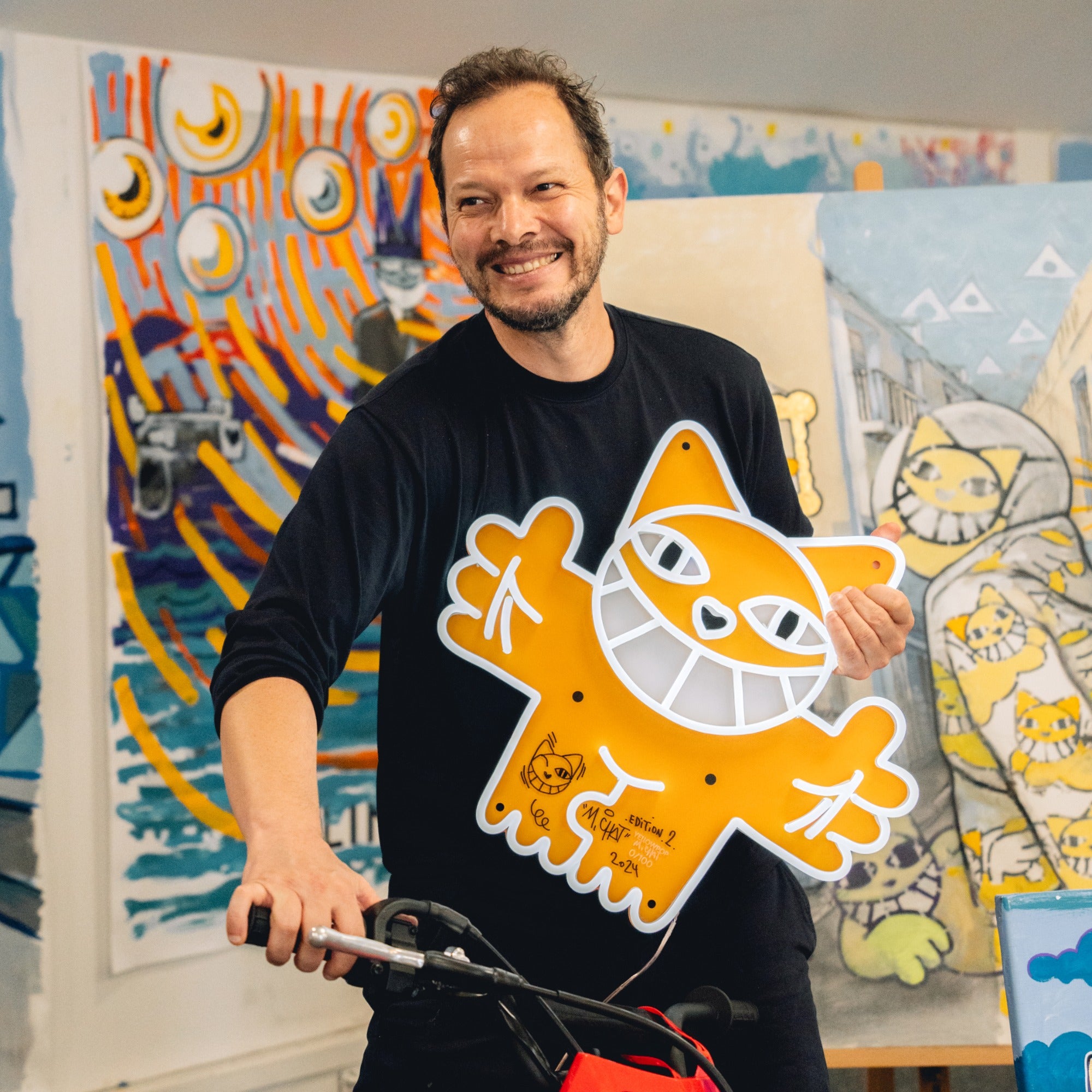 Thoma Vuille, pionnier du street-art depuis les années 2000, continue de laisser son empreinte dans le monde entier. Avec ce néon LED exclusif, M. CHAT s’invite chez vous pour illuminer votre intérieur.