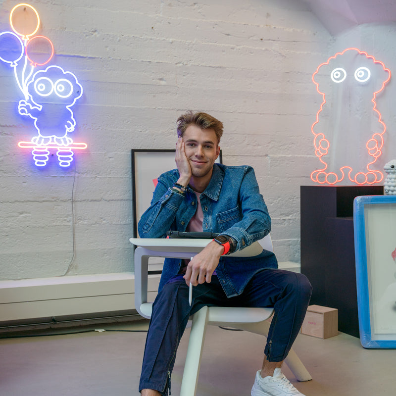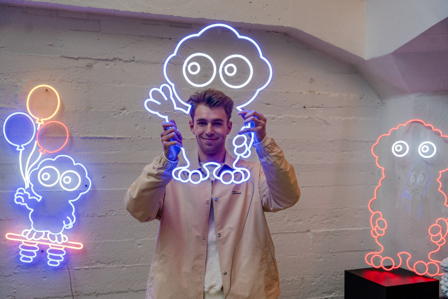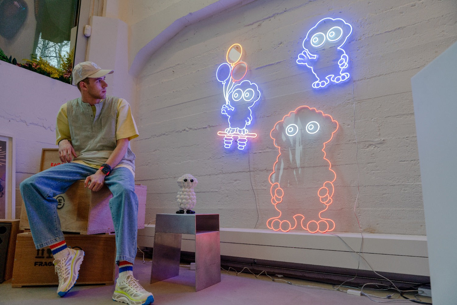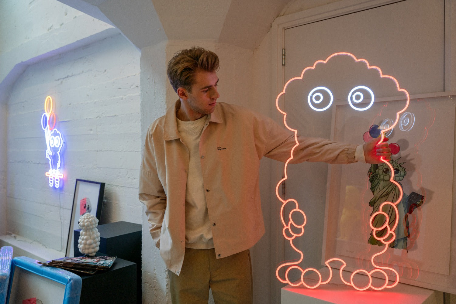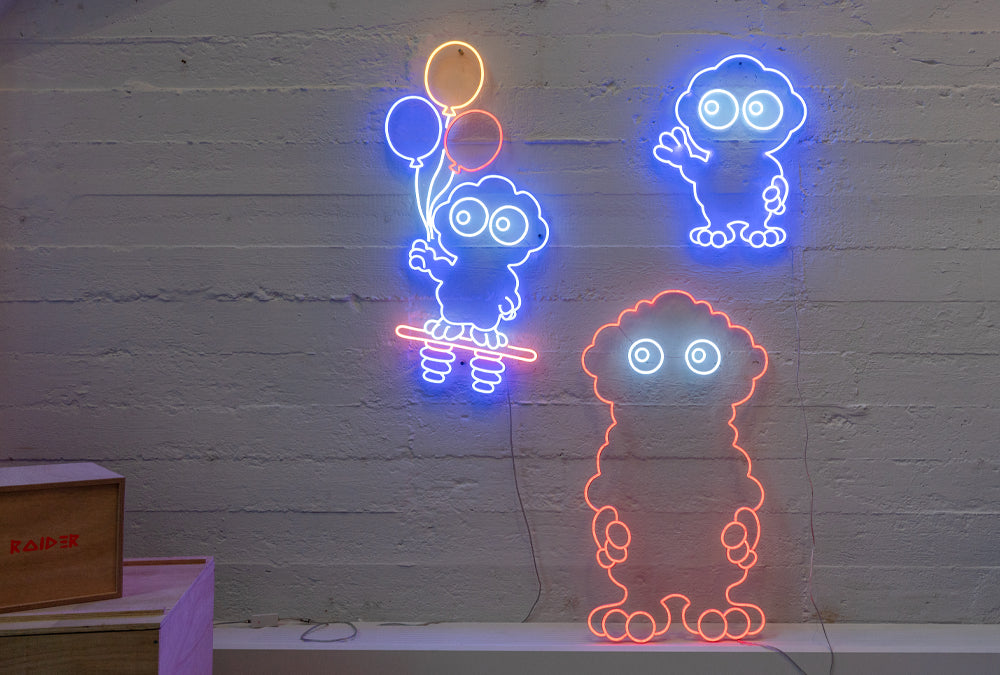 L’artiste nous invite à rejoindre son monde fantastique avec une collection de néons mettant à l’honneur ses sculptures : Scoop !
