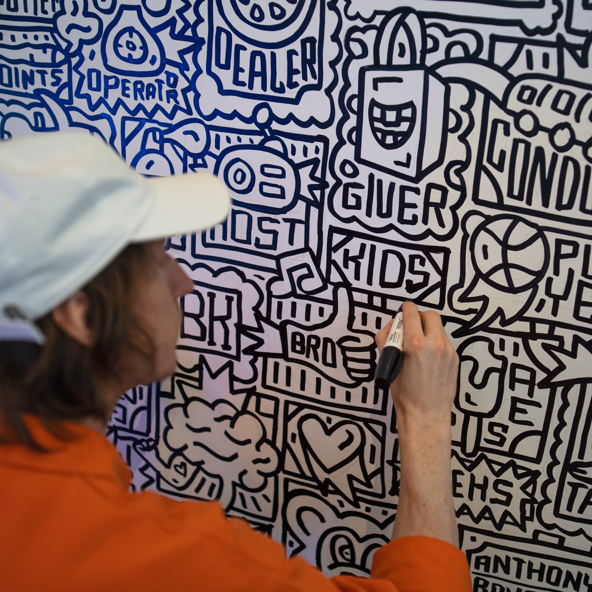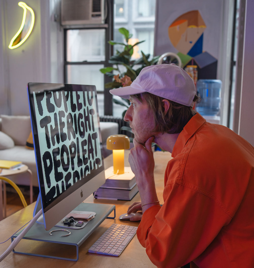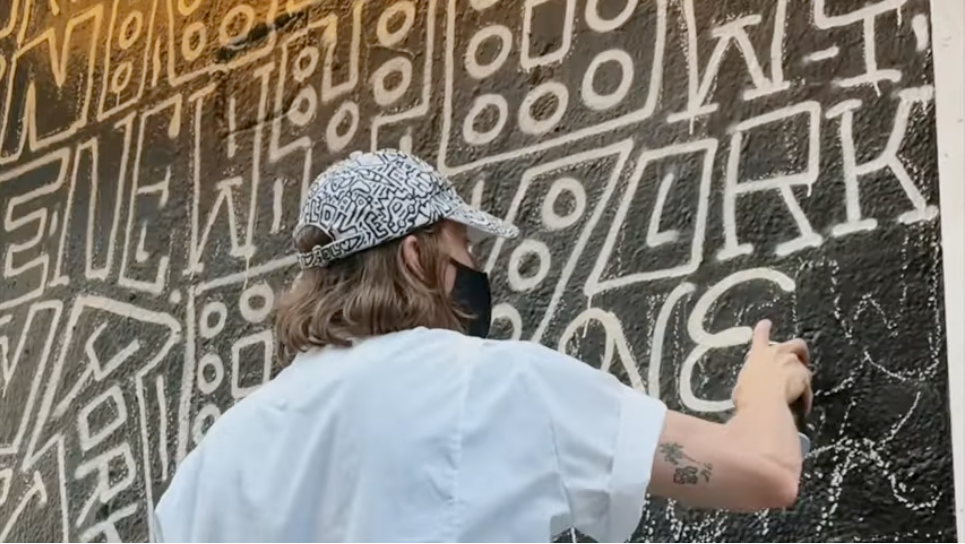 Son parcours a commencé dans l'Ohio, où il était peintre en batiment. C'est en fréquentant l'École des Arts Visuels que son style énergique est apparu. À l'aide de lettres, d'icônes, de caractères et de couleurs contrastées, Timothy tisse des motifs en forme de puzzle qui racontent des histoires émouvantes et communautaires. Il a travaillé avec des marques telles qu'Apple, Tiffany & Co. et Nike, et dirige son propre studio à New York, où il vit actuellement. Sa créativité l'a amené à peindre de grandes fresques murales, à concevoir des chaussures de sport et même à écrire des livres à succès. Sa première exposition solo dans une galerie a eu lieu en 2021, et nous sommes fiers de participer à l'héritage éclectique de Timothy avec des signes en néons expressifs !