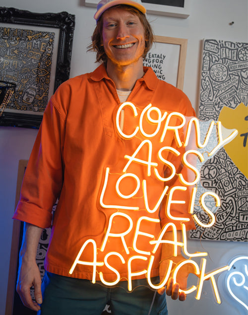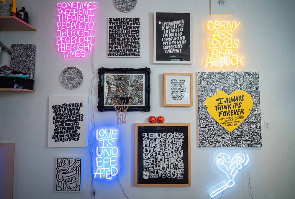 L'art consiste à partager des histoires. Timothy Goodman le sait, et nous aussi ! Nous avons créé avec l'illustrateur, auteur, muraliste et artiste polyvalent, une collection exclusive de 4 néons LED en édition limitée qui racontent une histoire universelle.