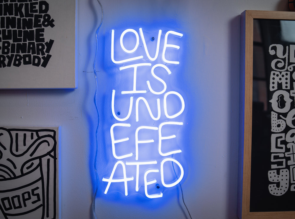L'art est meilleur lorsqu'il est partagé. Timothy est connu pour ses peintures murales en direct et ses efforts en faveur de la communauté, qui permettent de relier des personnes de tous horizons. Accrochez votre nouveau néon à un endroit où il pourra être partagé avec tous ceux qui entrent dans votre maison.