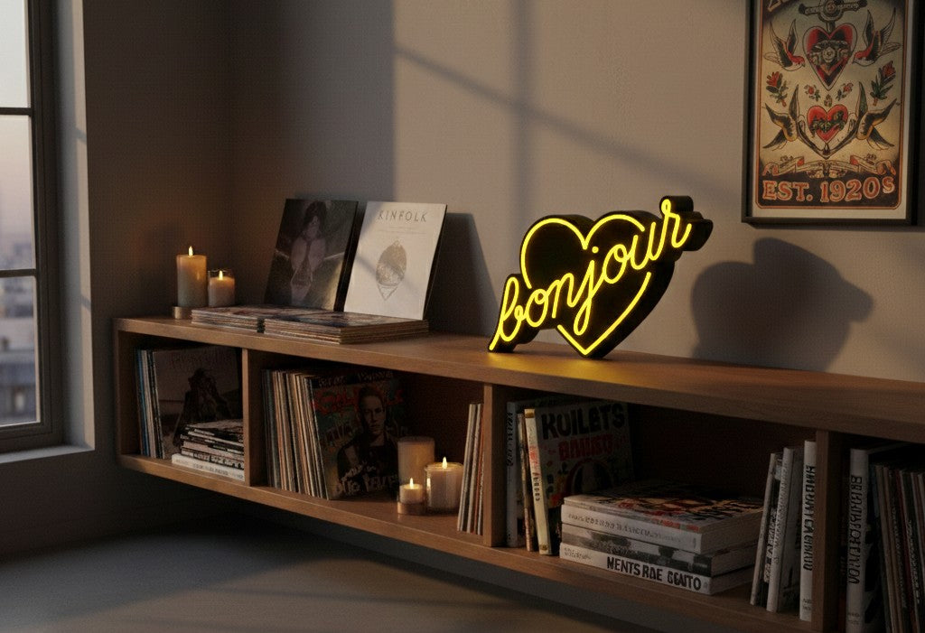La PopBox « Bonjour » transforme ce mot iconique en un objet lumineux sculptural. Un vrai coup d’œil pour votre intérieur, impossible à ignorer.