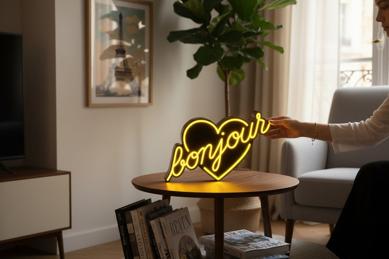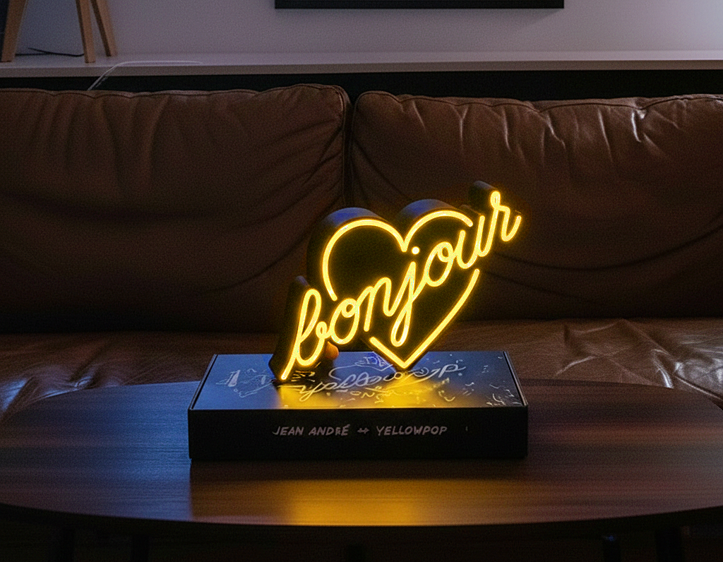 Avec la PopBox « Bonjour », Yellowpop réinvente ce message iconique dans un format sculptural, lumineux et rechargeable.