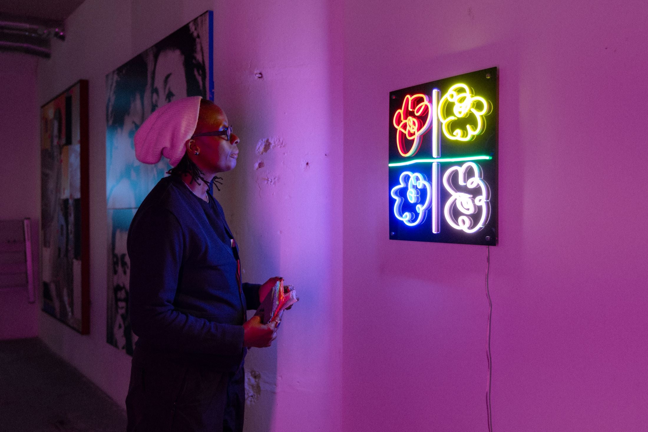 Mit ihren vibrierenden Kompositionen aus Strass, Acryl und Emaille stellt sie konventionelle Standards in Frage und bietet eine neue, emanzipatorische Definition von Schönheit.