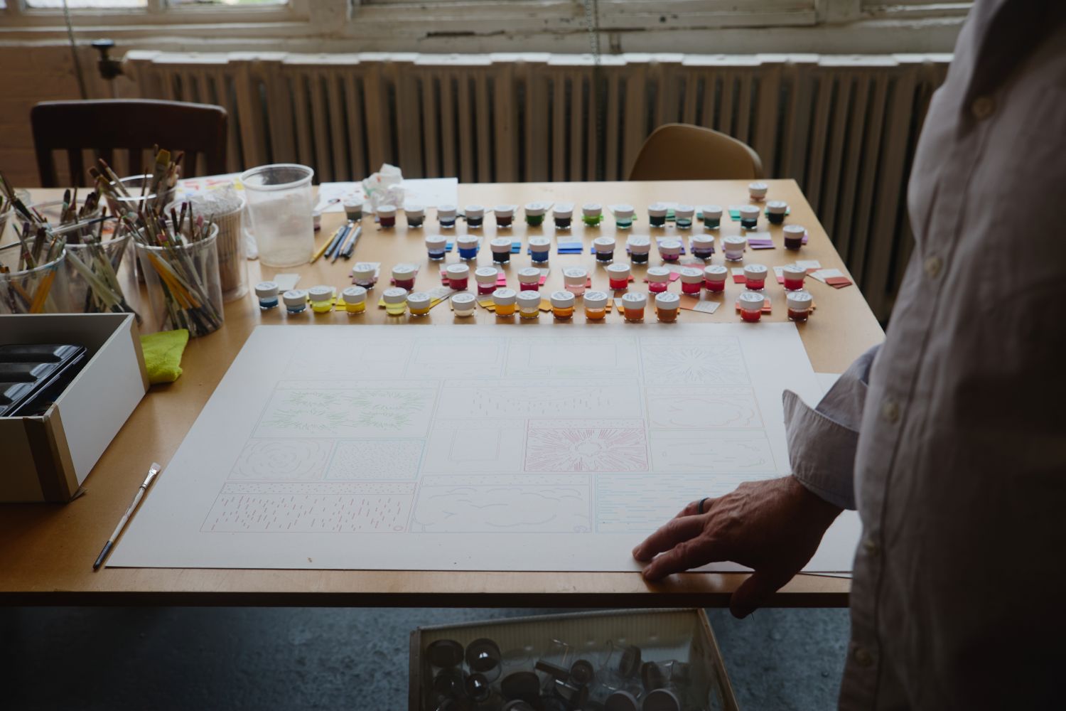 La collection Peter Halley x Yellowpop fait rayonner l’univers de l’artiste, avec ses cellules emblématiques, ses conduits et ses couleurs vibrantes.