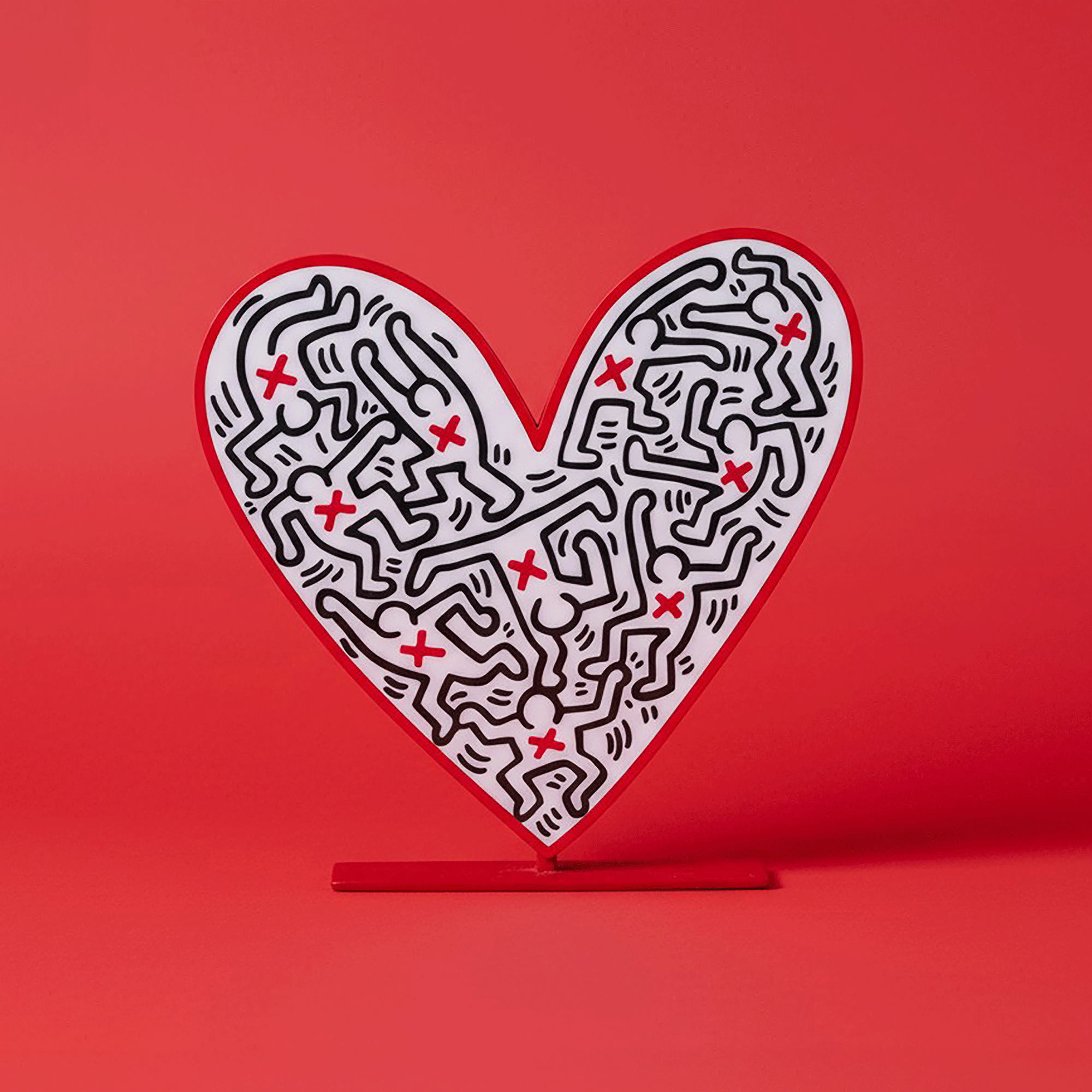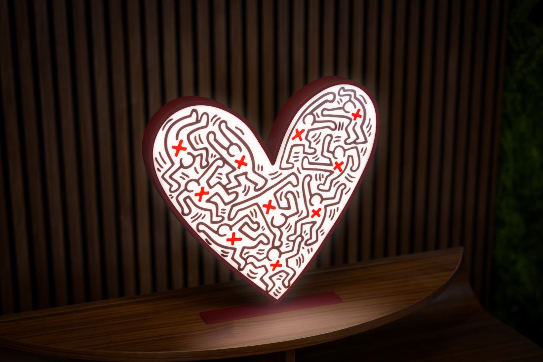 Le célèbre cœur de Keith Haring rayonne de joie et de lien en lumière. Une PopBox qui illumine votre espace avec l’énergie, l’art et la joie de l’artiste.