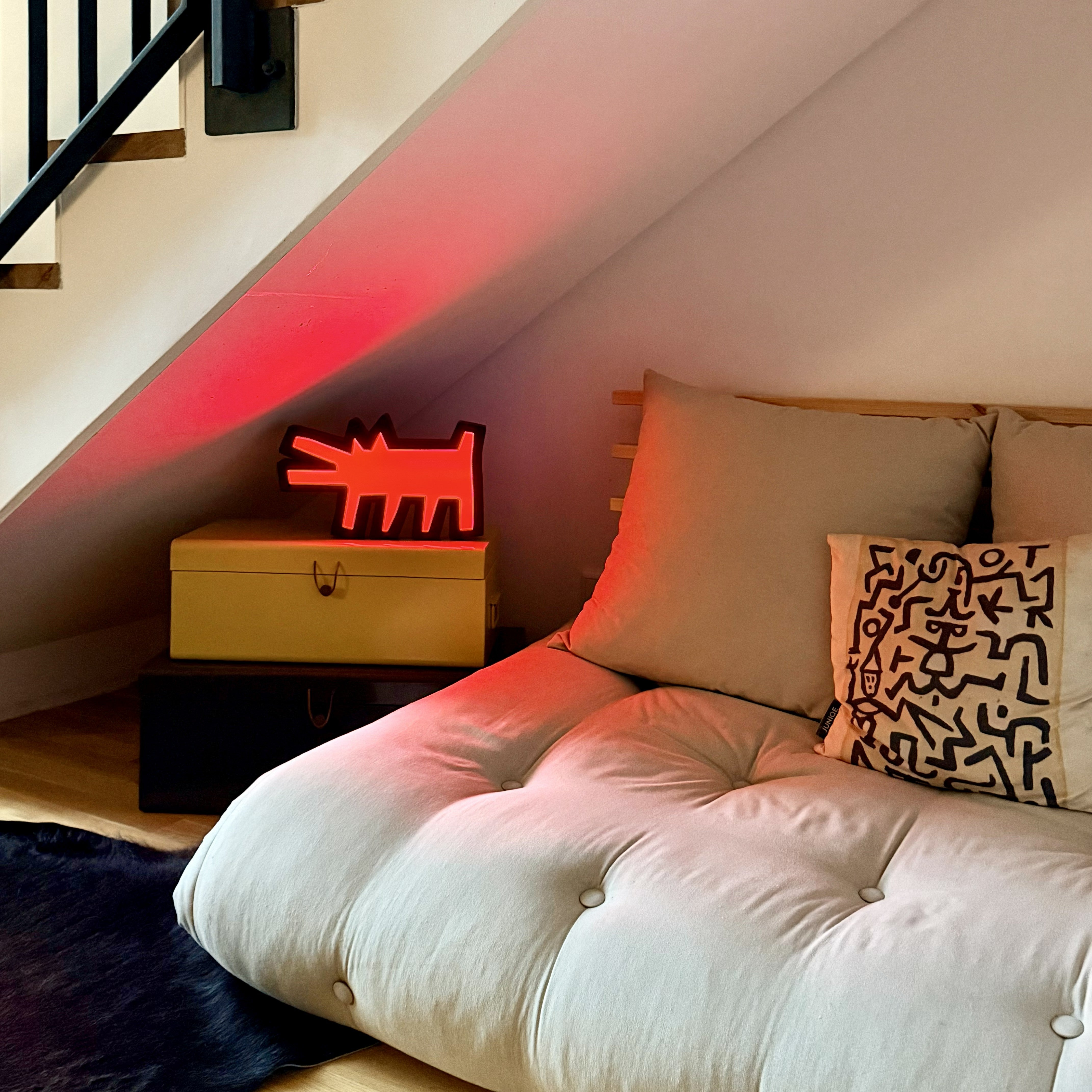 Le célèbre Barking Dog de Keith Haring prend vie dans votre espace. Cette création éclatante restitue l’énergie de son art et le dynamisme des rues, faisant de votre intérieur une galerie en mouvement.