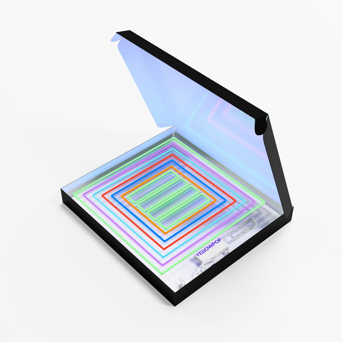 Découvrez 001, la première création exclusive de la collection Peter Halley x Yellowpop. Cette pièce lumineuse réinvente le langage visuel iconique de l’artiste — carrés superposés et formes structurées — transposés en néon éclatant.