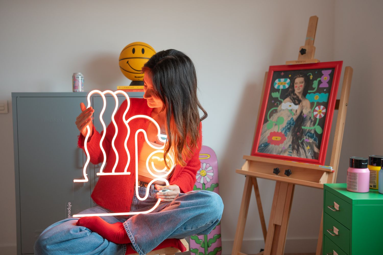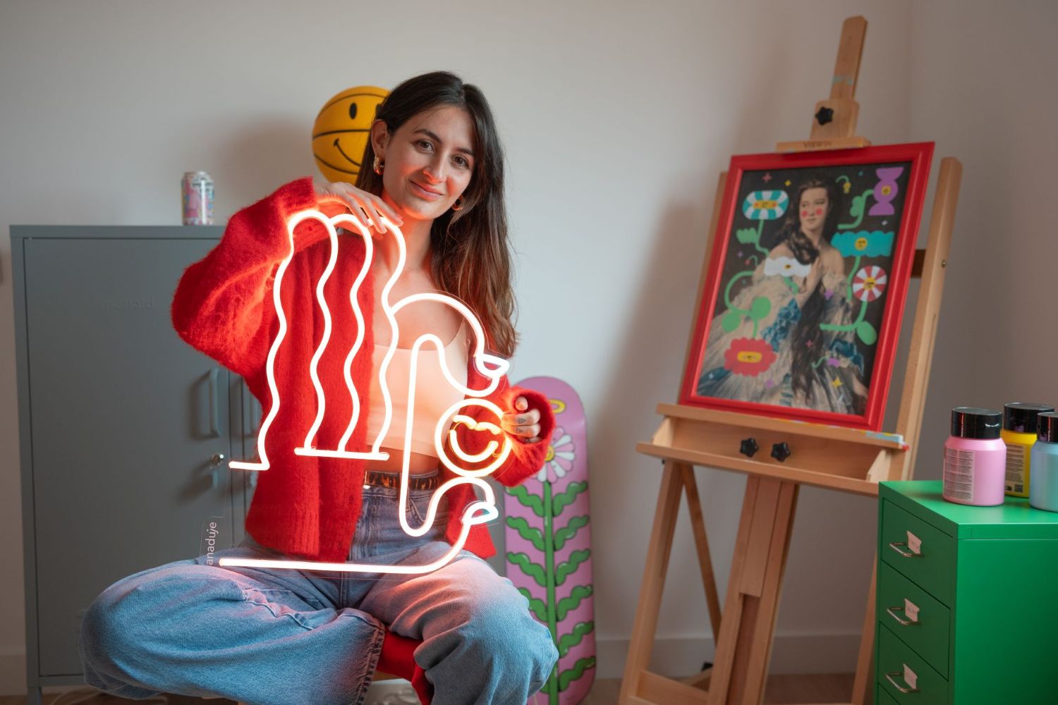 Ana, célèbre pour ses illustrations digitales, apporte sa touche magique dans le monde physique avec des néons. Cette évolution donne à son art une présence lumineuse qui transforme l'atmosphère, éclairant les espaces et les esprits.