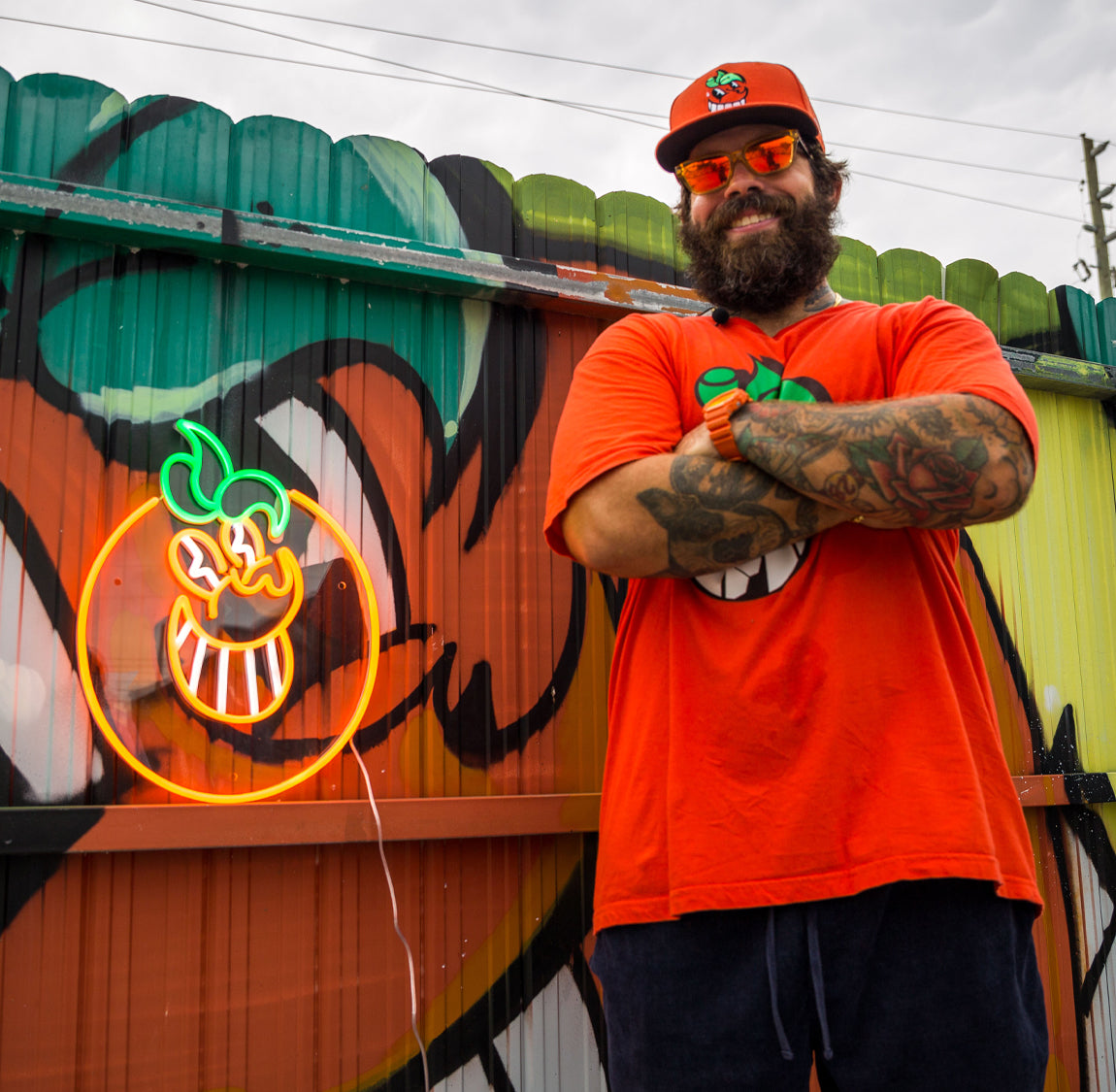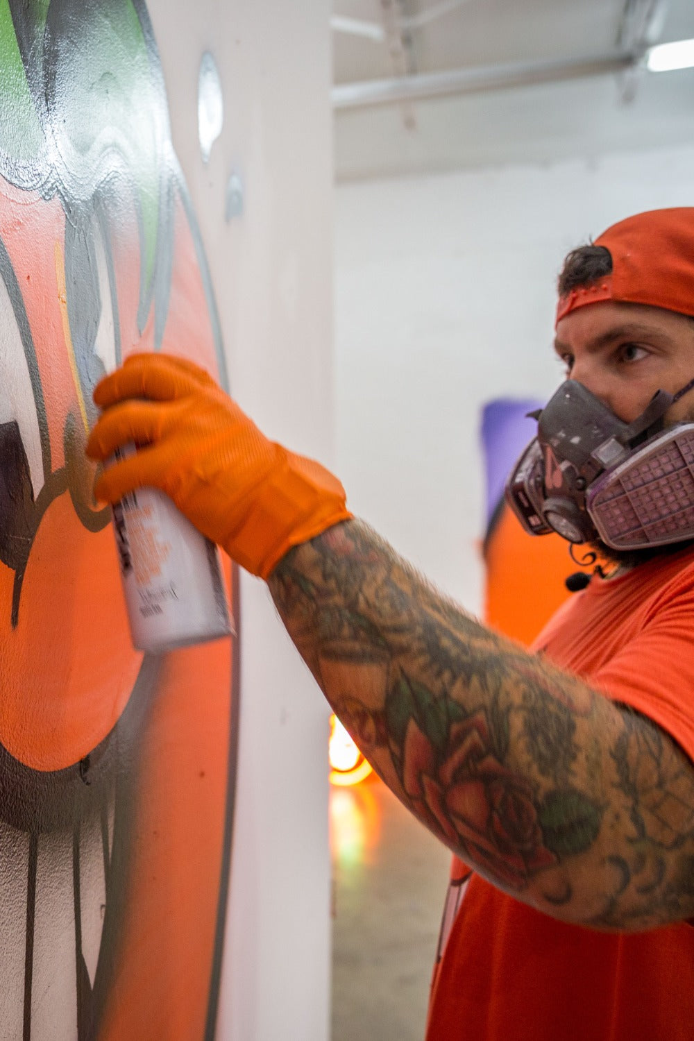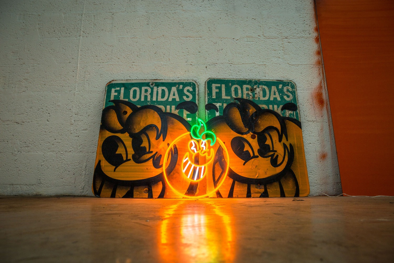 ATOMIK is a Miami-based artist. Trained in graphic design, ATOMIK is an important figure in the Miami art scene. Growing up in Miami's emerging graffiti scene in the '80s, he himself witnessed at an early age what would later become his profession. Famous for his iconic orange character, which appeared in reaction to the demolition of the Miami Orange Bowl, the artist also marks Miami's walls with his pared-down styles, graffiti and calligraphy. His inimitable orange character has been placed all over the world, bringing a piece of Miami to places such as Chile, Peru, Colombia, Brazil, Argentina, Mexico, the Netherlands, Germany, Italy, Spain, England, Australia, Korea and Thailand.