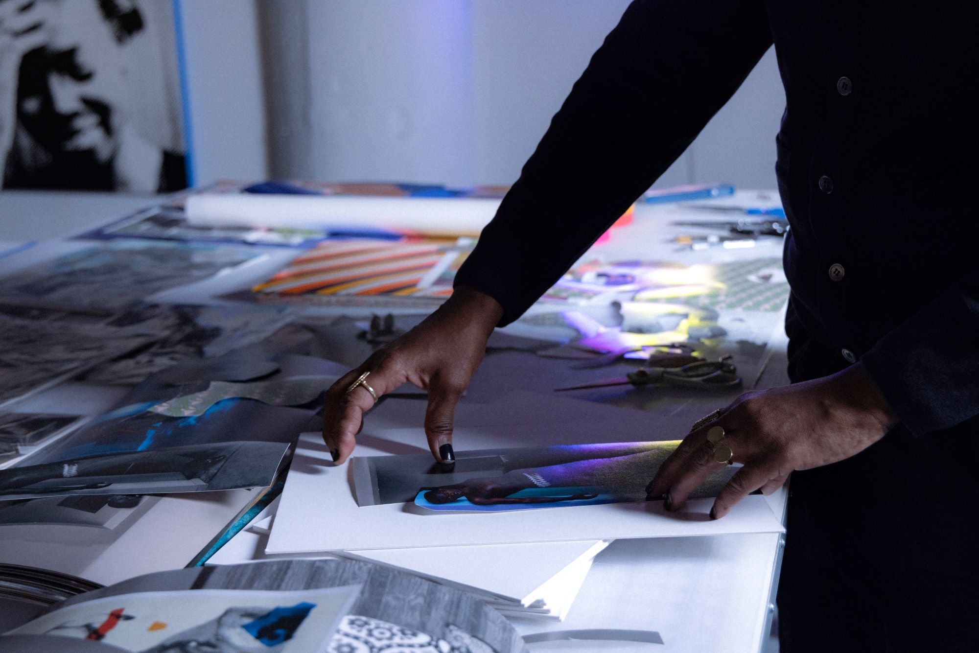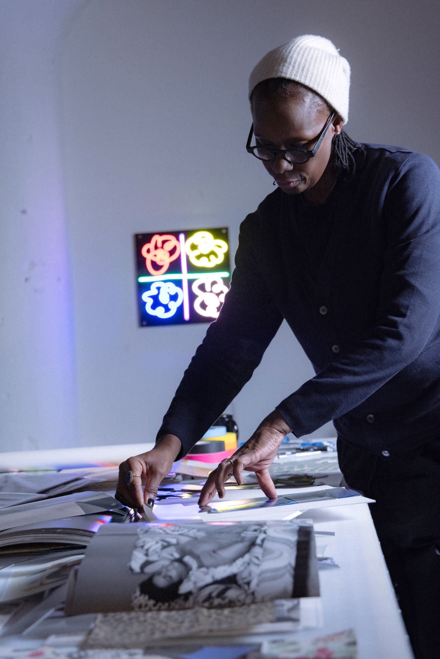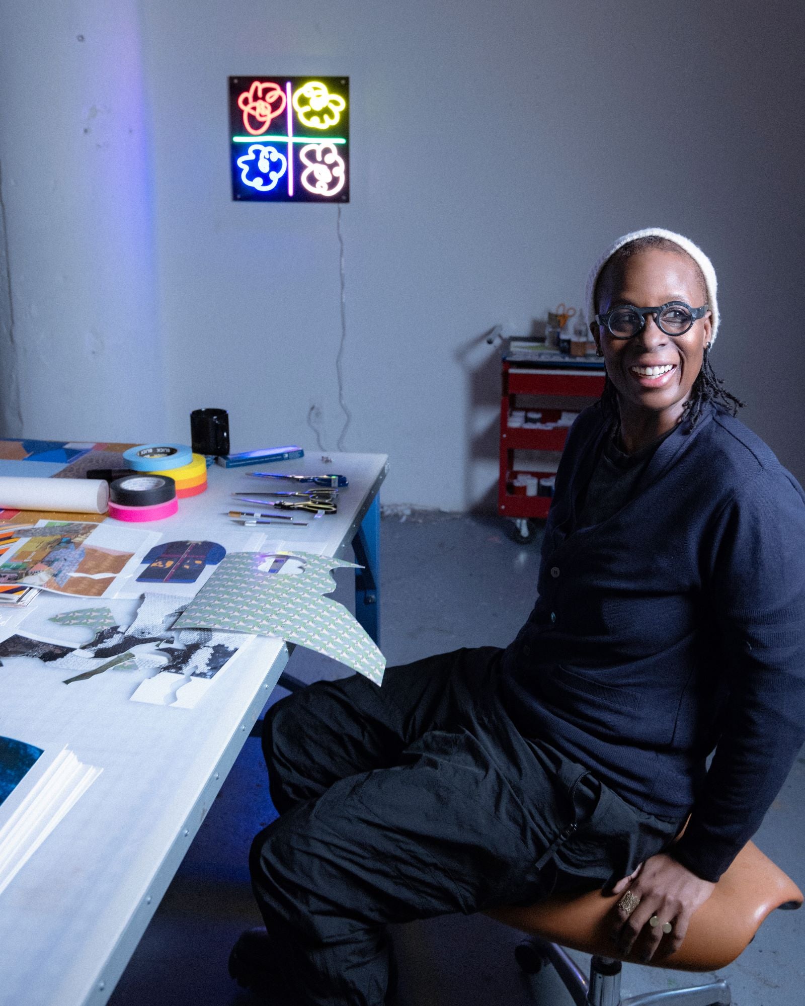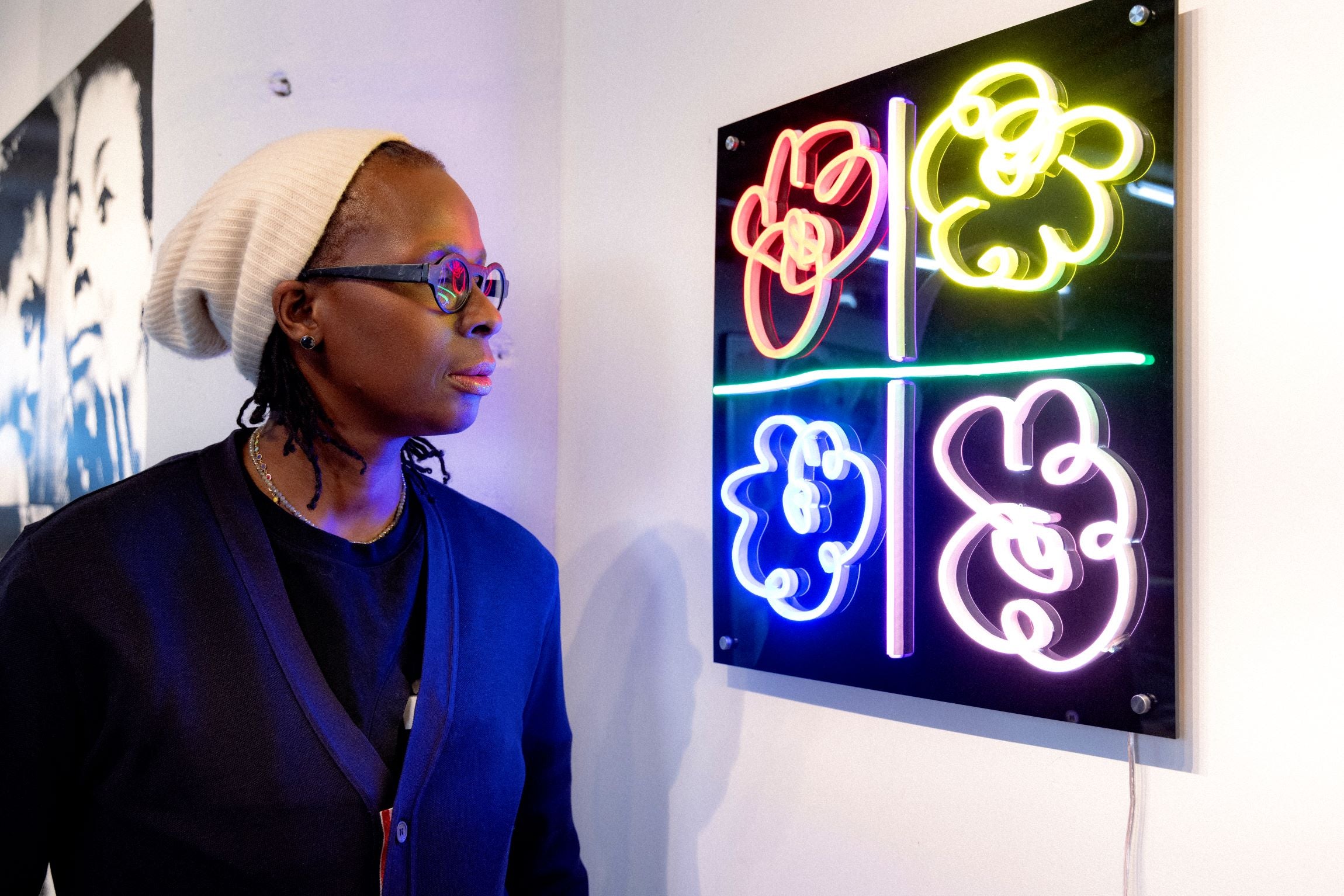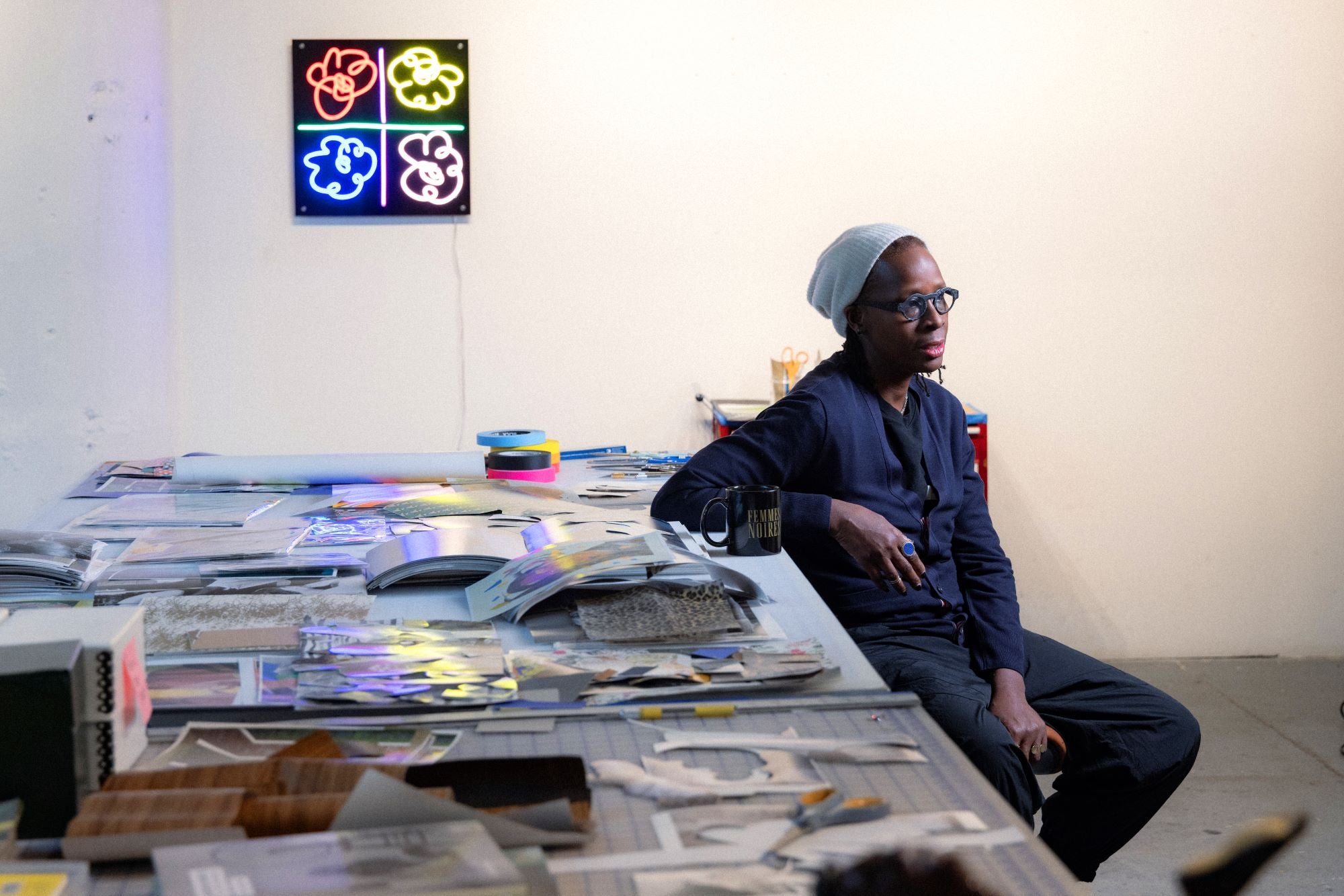 Mickalene Thomas is an internationally renowned multidisciplinary artist, known for her striking portraits of black women, often embellished with rhinestones, acrylic and enamel. Exploring themes of identity, race and gender, her work interrogates black female identity and its complexities within Western culture. A Tony Award-nominated co-producer, curator, educator and mentor, Thomas made history in 2023 by becoming the first black female queer artist to have a Yale University fellowship named after her. Her work is included in prestigious collections such as MoMA, the Whitney and the Smithsonian.