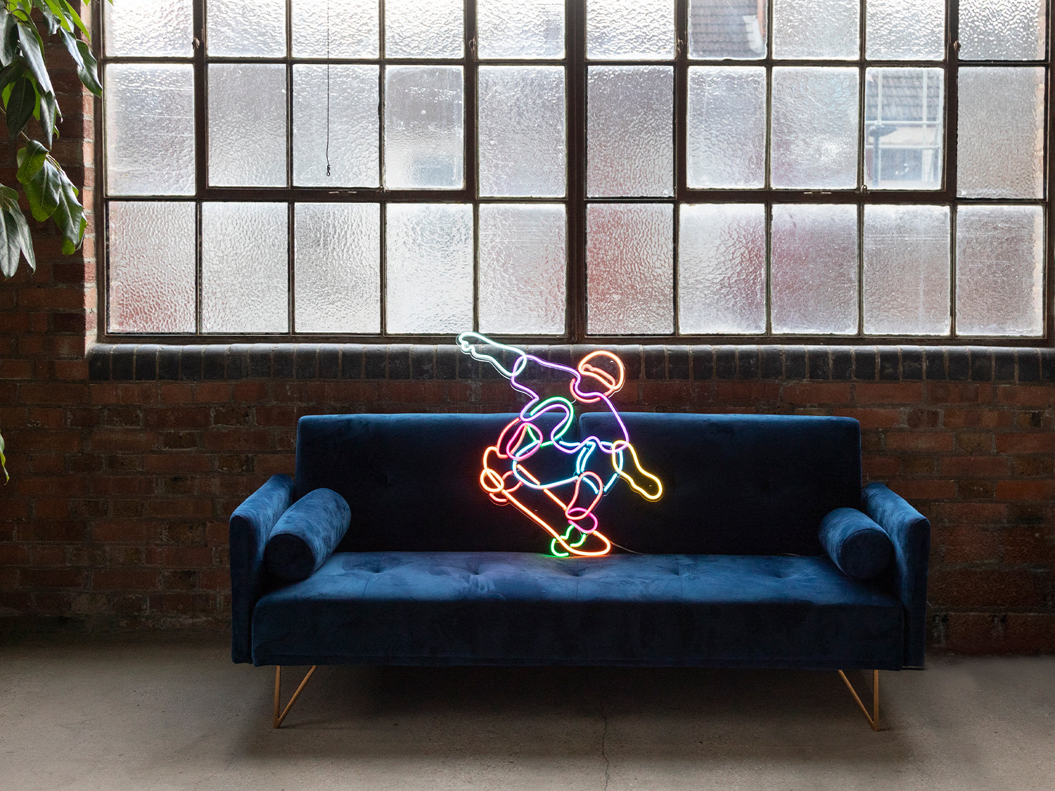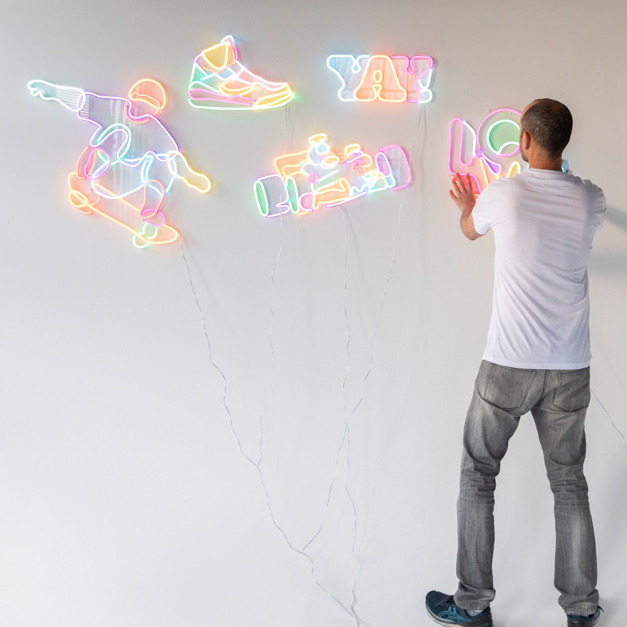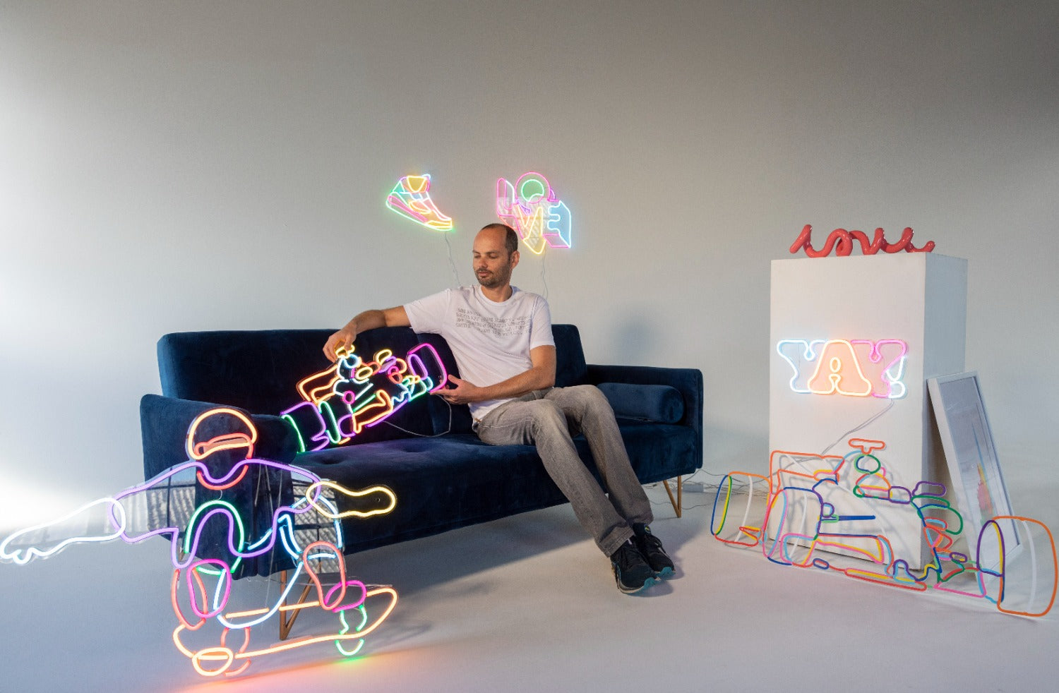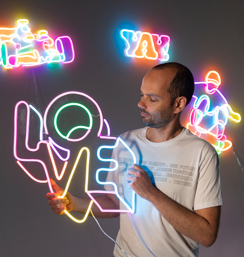 Dive with us into the fun and colorful world of Yoni and discover his incredible designs revisited in neon LED.