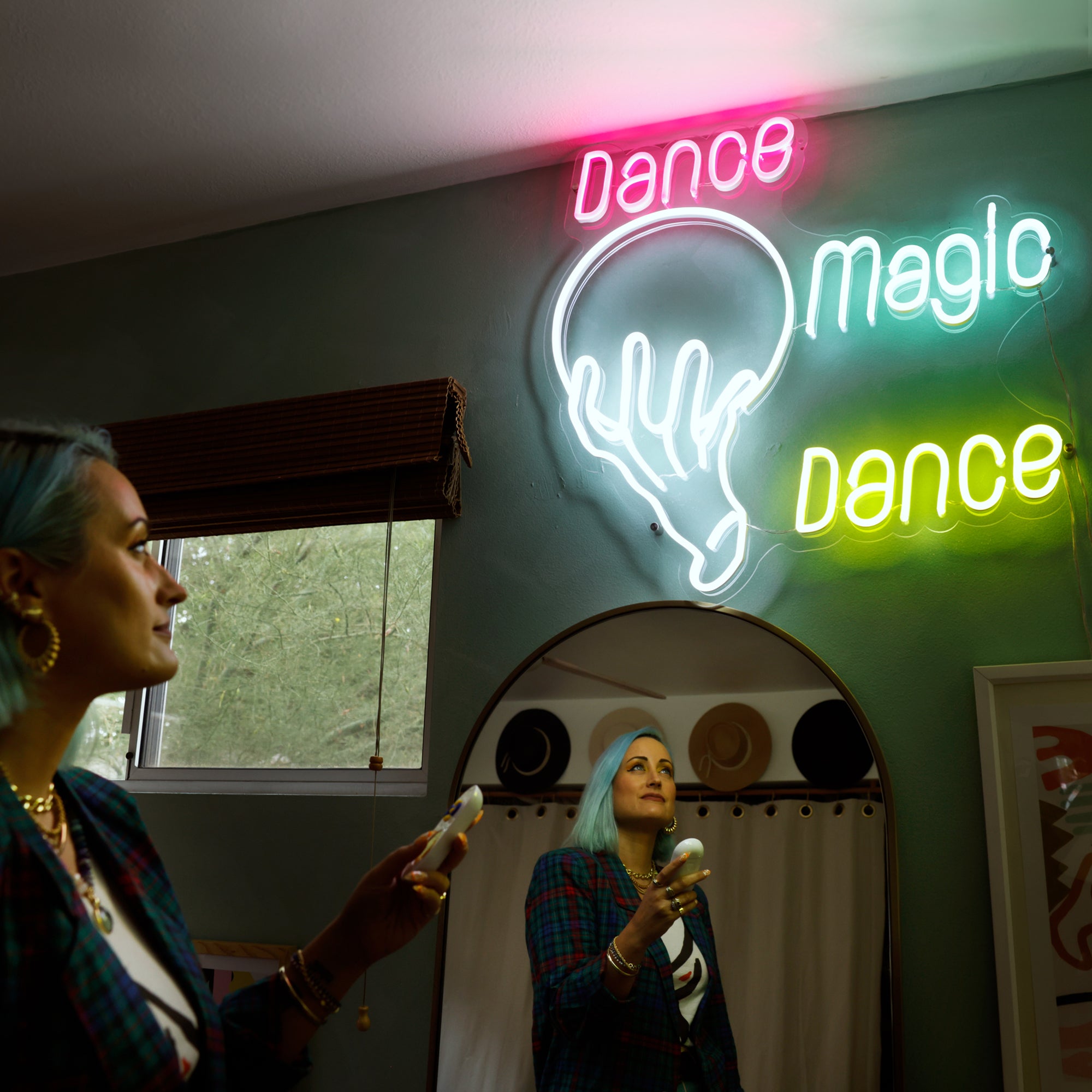 Après s’être procurée un exemplaire du néon Yellowpop x Jonathan Adler, Katie s’est dit qu’il fallait qu’elle crée son propre néon. Une pièce unique et magique. En effet, dans un intérieur où tout est chiné et agencé avec précaution, la voie du “sur mesure” lui semblait la seule option…