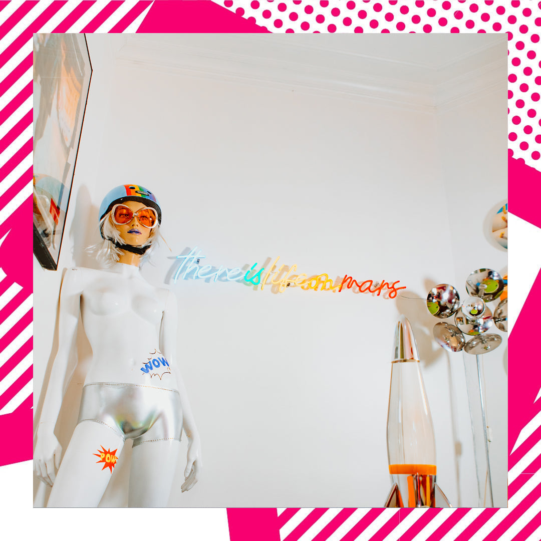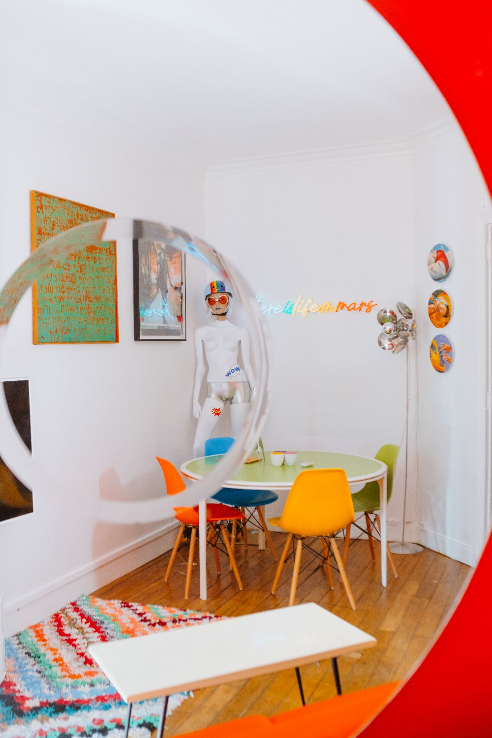 For her apartment, Isabelle decided to represent the title of a song by her favorite artist - David Bowie - in multi-colored neon. " Life on mars" is sky blue, green, yellow, orange and red.