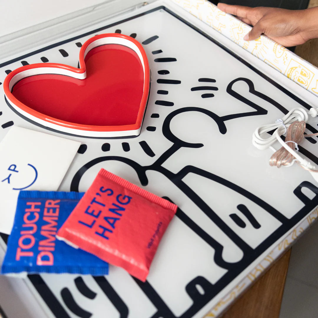 Cette œuvre en néon LED réimagine l'une des icônes colorées et animées de Keith Haring en la transformant en une œuvre unique pour votre intérieur. Conçue exclusivement pour la collaboration Yellowpop x Keith Haring, Barking Dog est composée de lumières LED, qui peuvent être intensifiées, ajustées ou complètement éteintes - comme aucun autre chien aboyant.