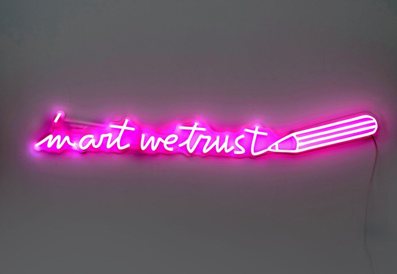 La créativité est une conviction — et André Saraiva la met noir sur blanc. Cette pièce exclusive en néon présente sa phrase manuscrite « In Art We Trust », qui brille en rose et dont le trait de soulignement imite un coup de crayon. Clin d'œil poétique au caractère sacré de la liberté de création, cette pièce en édition limitée transforme l'expression personnelle en art lumineux. André apporte son style caractéristique à cette déclaration lumineuse. Que vous soyez passionné d’art ou simplement curieux, c’est l’occasion de posséder un objet qui célèbre la force de la créativité.