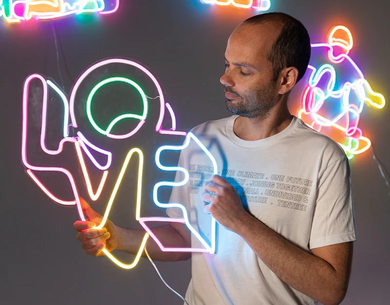 Chaque signe est fabriqué à partir de néons flex de haute qualité. Ils sont tous montés sur un support acrylique recyclé transparent invisible.