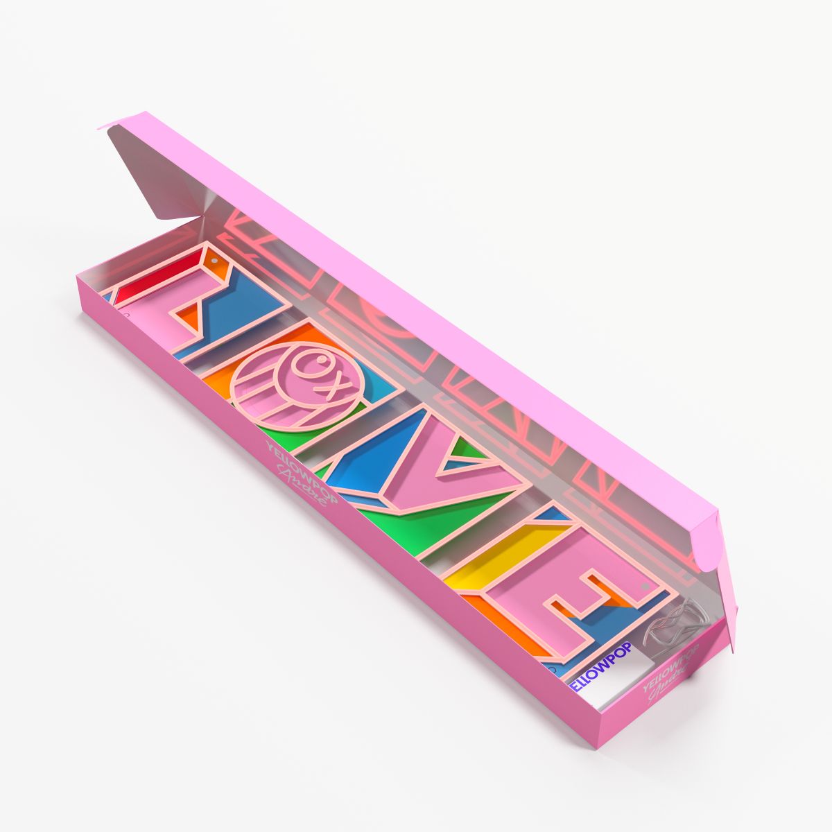 LOVE occupe le devant de la scène avec ce néon LED exclusif d'André Saraiva, composé d'une seule pièce. Conçu dans un style géométrique éclatant et imprimé de couleurs vives, chaque lettre déborde d’énergie — avec une apparition malicieuse de Mr. A niché dans le “O”. Illuminée d’un rose doux et pensée pour se fixer parfaitement à n’importe quel mur, cette œuvre évoque la passion, la connexion et la joie créative. Un hommage à ce qui inspire l’univers d’André — et le nôtre — cette création lumineuse transforme le mot “LOVE” en une déclaration visuelle audacieuse.